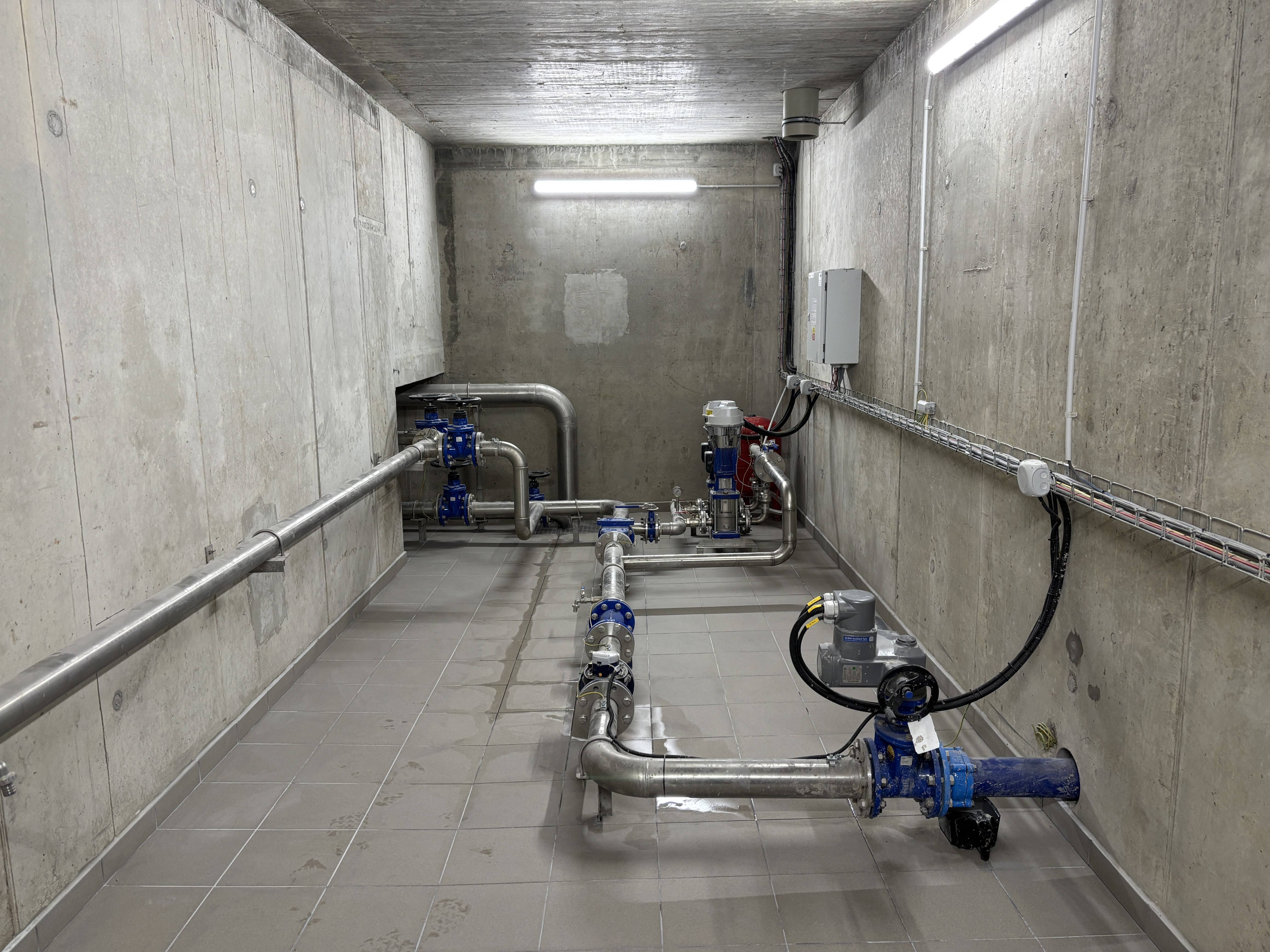 Projekt „Vodovod Marek“ zahrnuje výstavbu a rekonstrukci klíčových vodárenských objektů s cílem zajistit stabilní a bezpečné zásobování pitnou vodou. V rámci projektu jsou realizovány nové akumulace o celkovém objemu 500 m³ (VDJ Marek 2×150 m³, VDJ Bořitov 50 m³, VDJ Drnovice 150 m³), včetně kompletního vystrojení armaturních komor, měření průtoků a dávkování chemikálií. Čerpací stanice Bořitov je navržena pro dopravu vody do VDJ Marek s kapacitou 7 l/s (2×3,5 l/s, H = 166 m), přičemž systém umožňuje i zvýšený výkon až 10,5 l/s. ČS Školská pracuje v režimu 1+1 s výkonem 5,08 l/s při dopravní výšce 36 m. Ve zdrojích VZ Hřbitov a VZ Zámecká jsou instalována nová čerpadla s pracovními body 12,35 m³/h (H = 93,31 m) a 13,22 m³/h (H = 73,54 m). Projekt tak komplexně řeší akumulaci, čerpání i řízení vodního hospodářství s důrazem na provozní spolehlivost a efektivitu systému.
